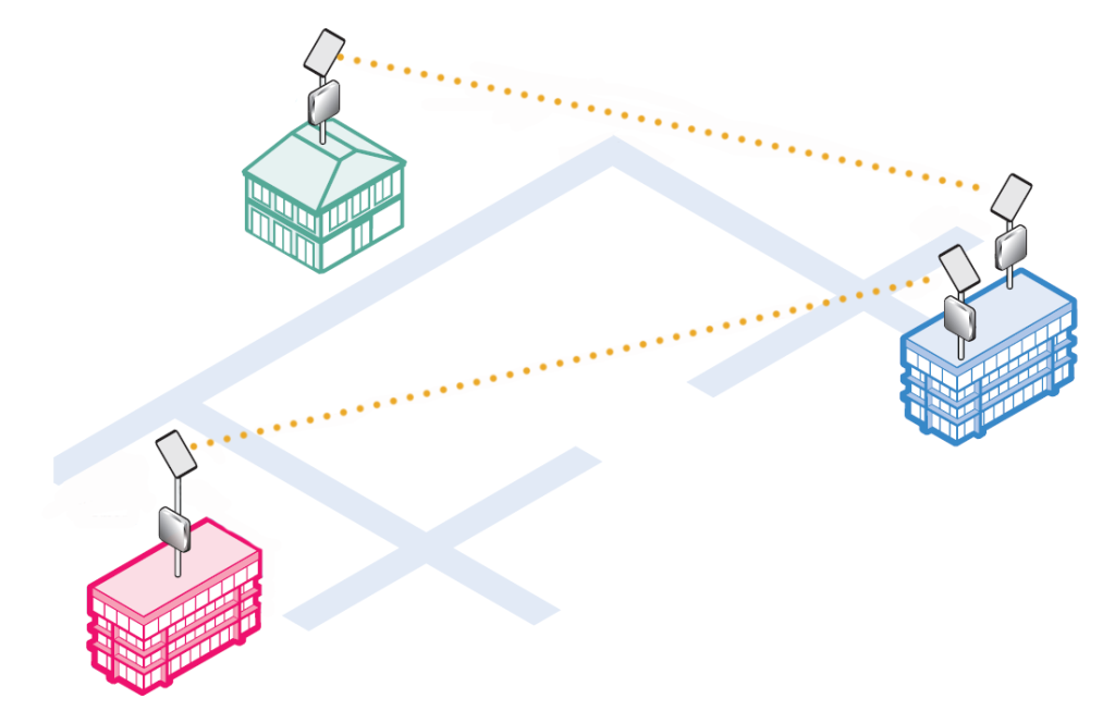A point to point topology is the simplest to configure and connects two networks in two separate locations, normally a remote building or warehouse, via one wireless bridge in each location.